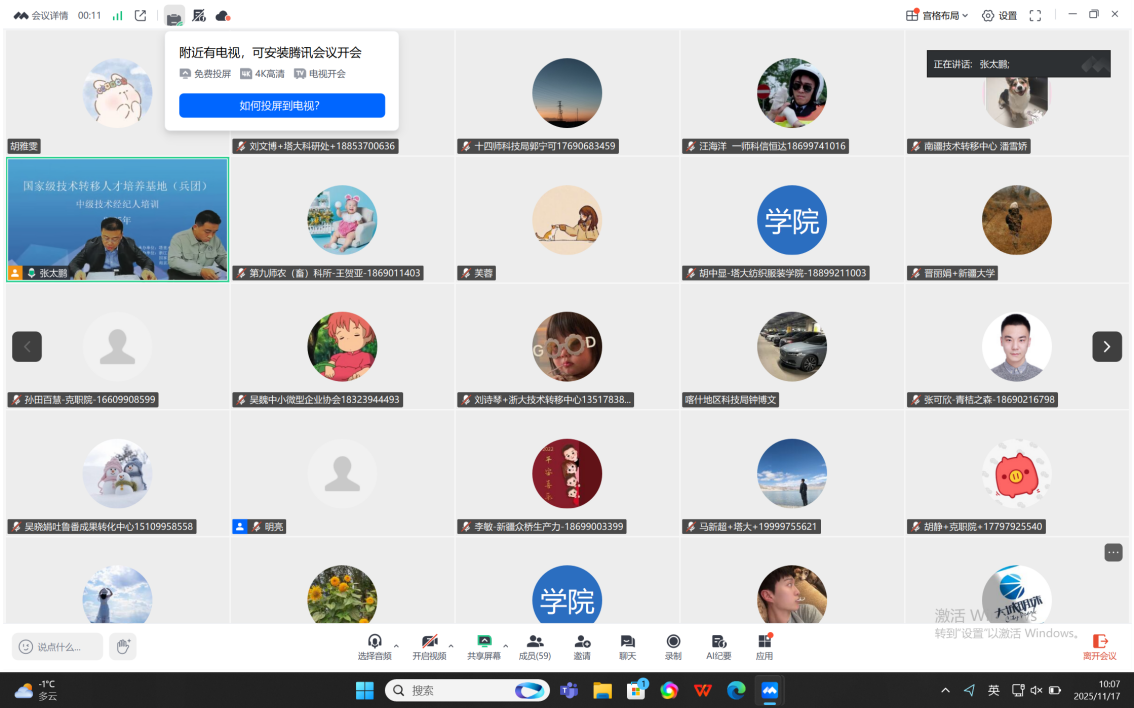 近日,由塔里木大学南疆技术转移中心主办,浙江大学技术转移中心、昆明理工大学资产经营有限公司、西安远诺技术转移有限公司及南京理工大学技术转移中心共同协办的“第五期中级技术经纪人培训班”顺利完成全部培训任务,圆满落下帷幕。本次培训于11月17日至21日以线上形式举行,旨在深入贯彻落实国家“十五五”规划建议中“推动科技创新和产业创新深度融合,加快重大科技成果高效转化应用”的精神,为新疆与兵团培养一批高素质、专业化的技术转移人才。