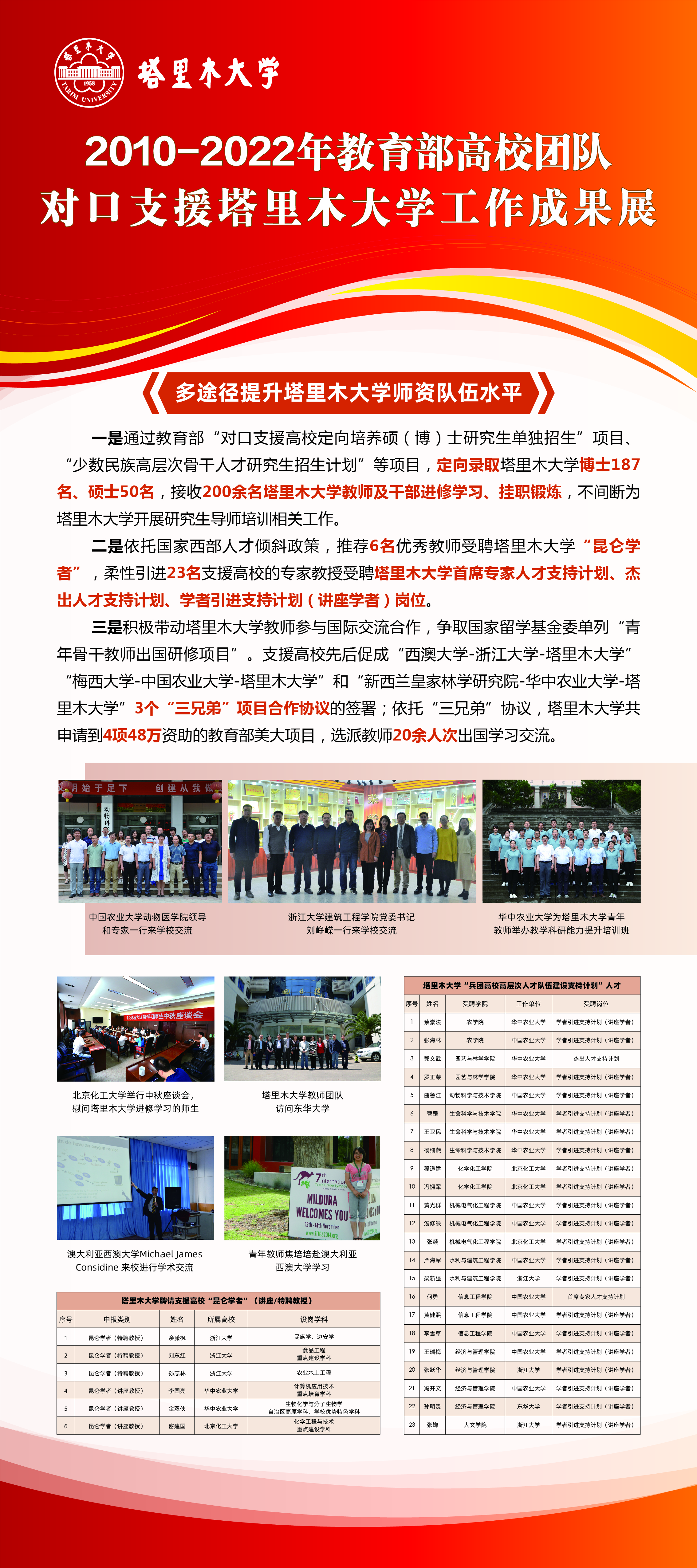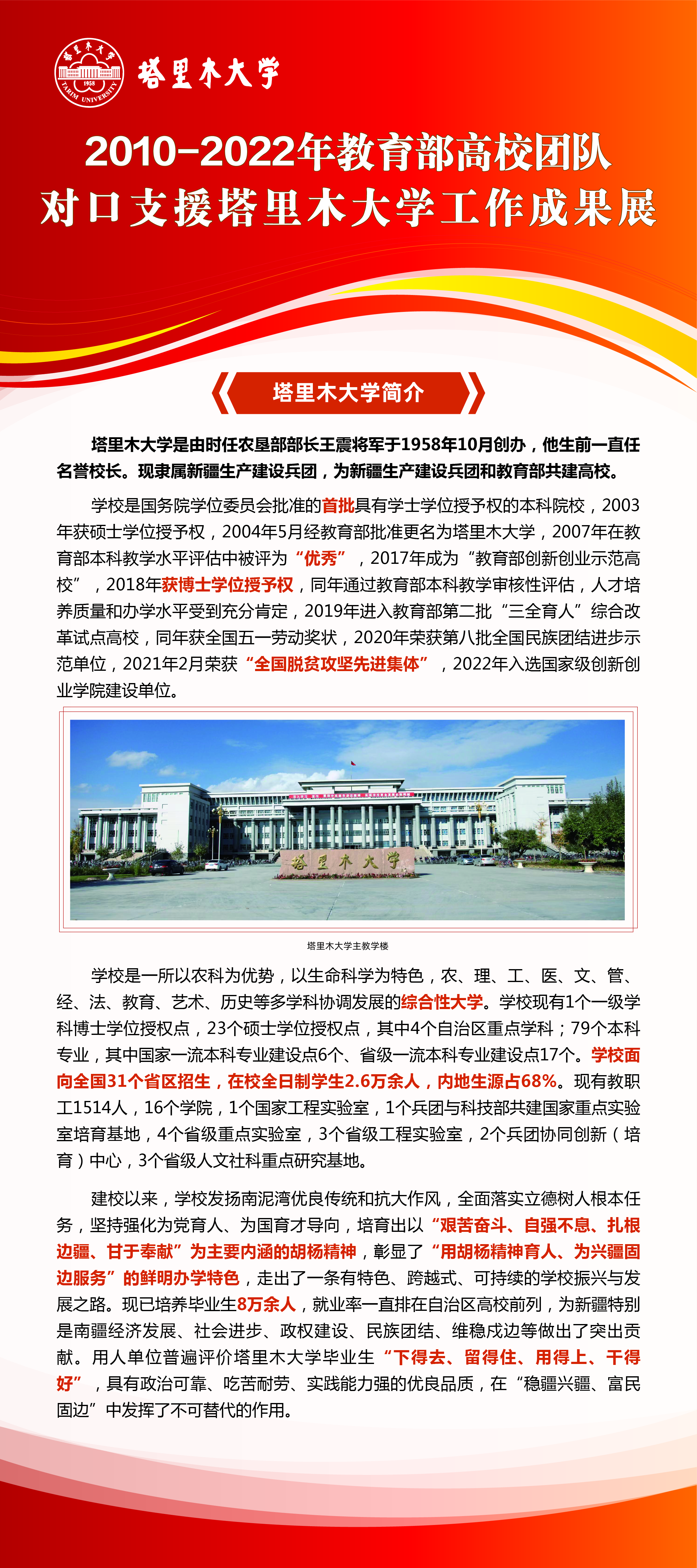 【援疆情·塔大行】教育部高校团队对口支援塔里木大学工作成果展(2010-2022年)